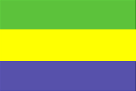 加蓬国旗呈长方形,长宽之比为4∶3。自上而下由绿、黄、蓝三个平行的横长方形组成。